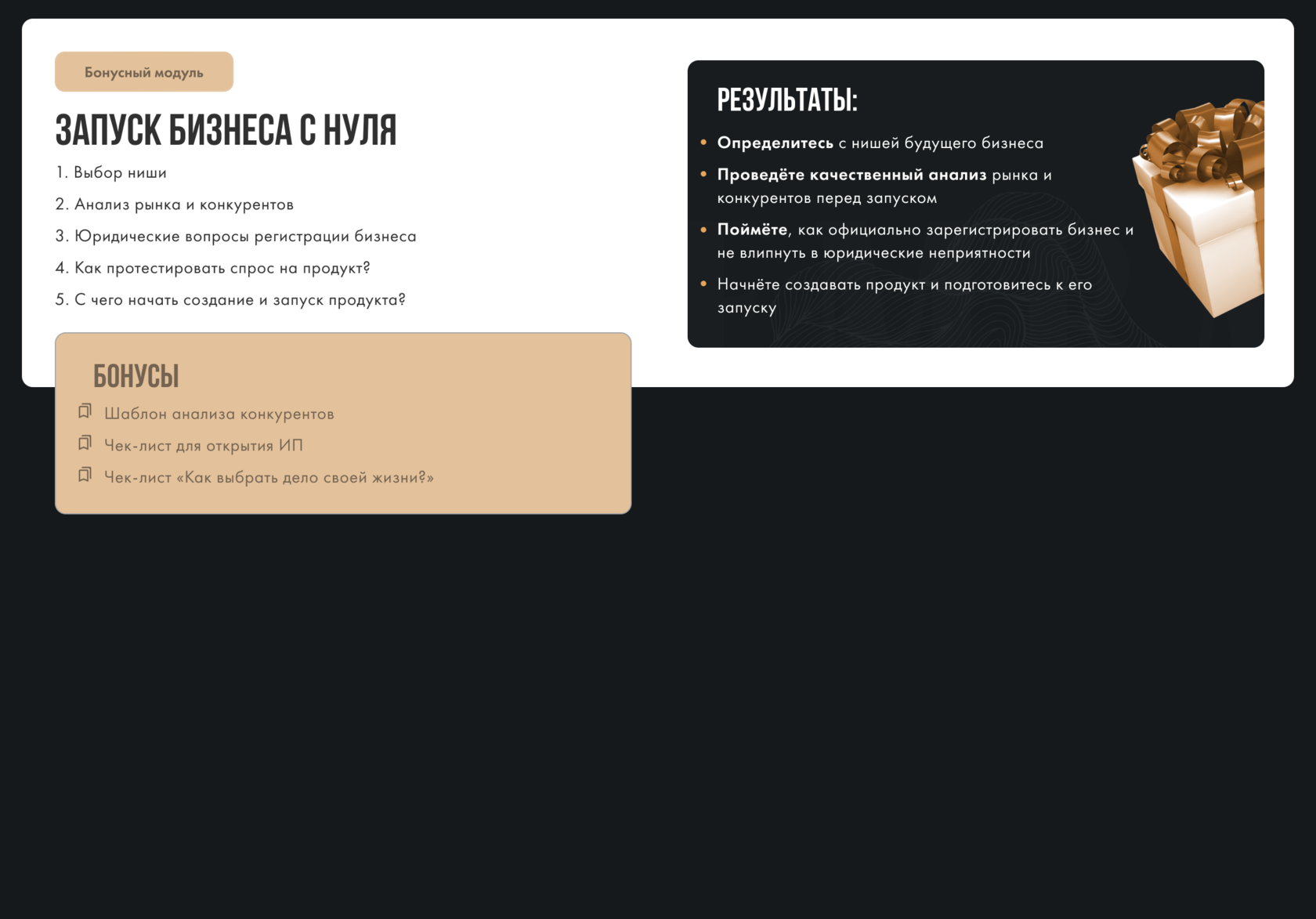 Бонусный модуль. Запуск бизнеса с нуля